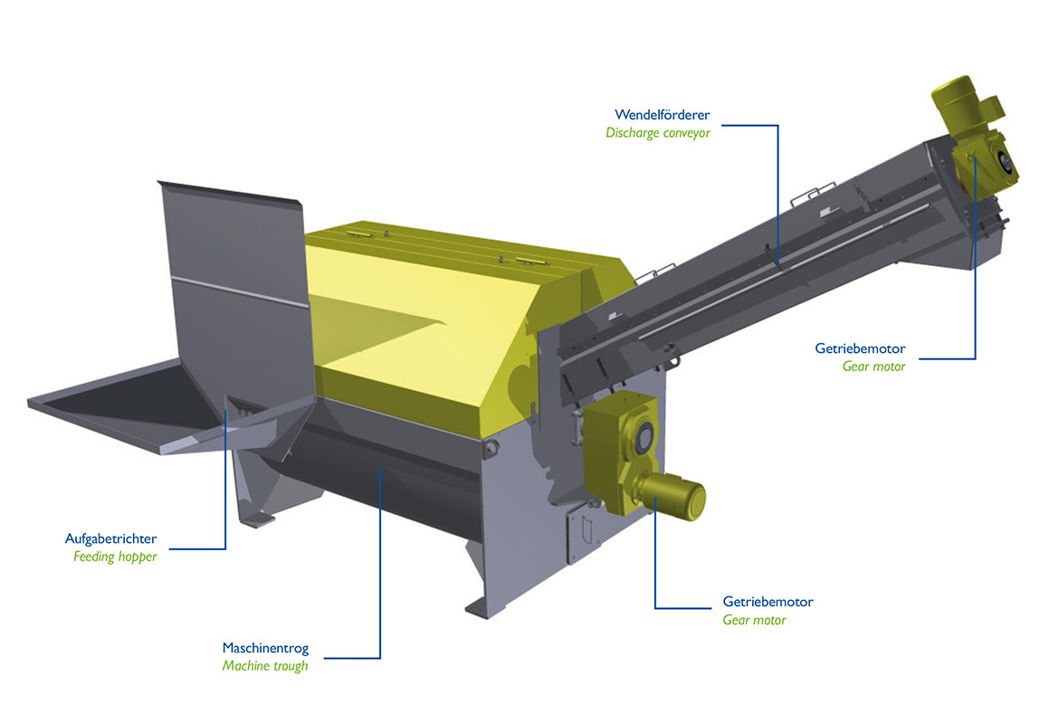 The ComTec system is used in precast and concrete product plants where large quantities of residual concrete and wash water are produced. The system offers a large water bath and therefore enables the residual concrete to be emptied quickly. The washed material is discharged via a spiral conveyor or a vibrating feeder unit. The receiving hopper is available in various designs and sizes to adapt the system to the individual conditions.
